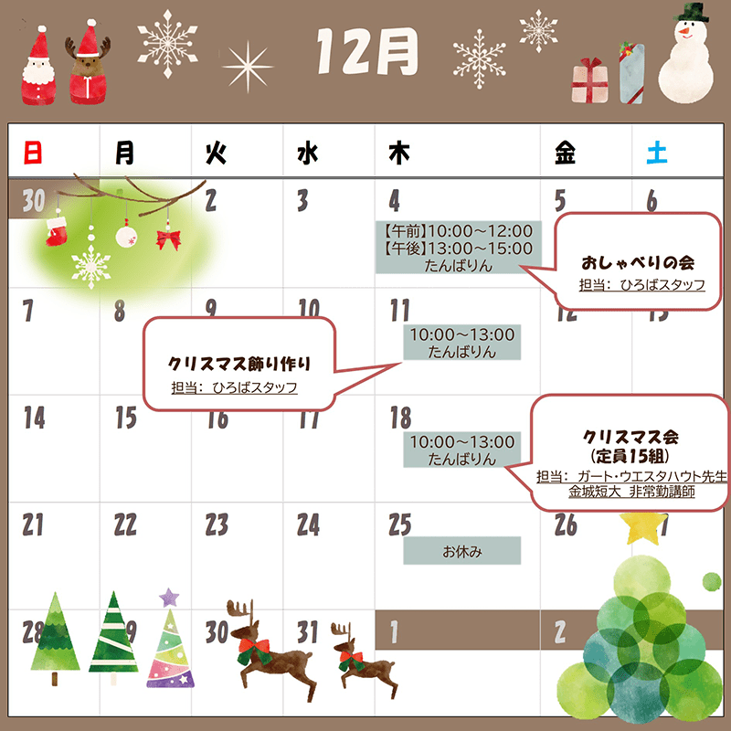 | 開催日 | 毎週木曜 10:00~13:00 ※詳細は月間スケジュールからご確認いただけます。(クリックで拡大します) |